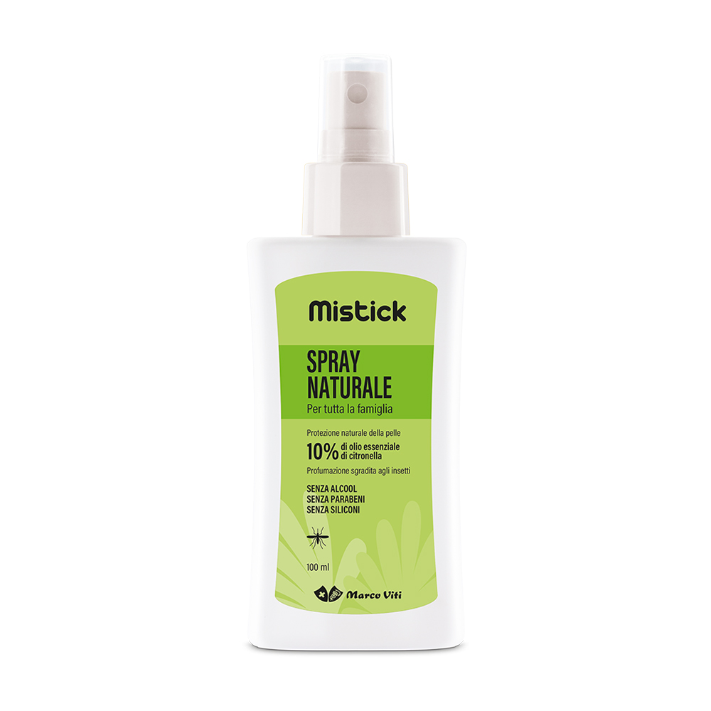 Mistick Naturale è uno spray cosmetico che contiene il 10% di olio essenziale Eucaliptus Citriodora il cui profumo è particolarmente sgradito agli insetti.