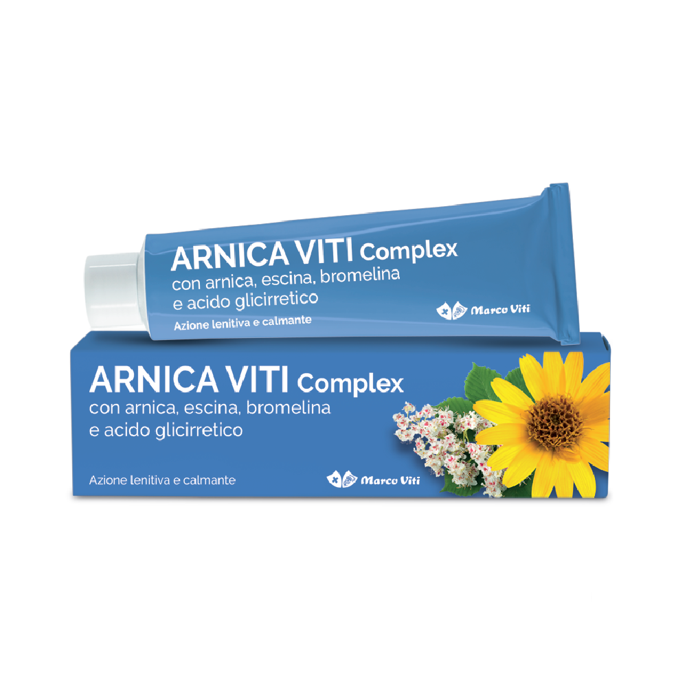 Arnica Viti Complex è un coadiuvante cosmetico che sfrutta le proprietà lenitive e protettive dell’arnica associata a escina, bromelina e acido glicirretico. Questi ingredienti sono utilizzati in fitoterapia per dare una sensazione di sollievo in seguito a piccoli traumi e contusioni.